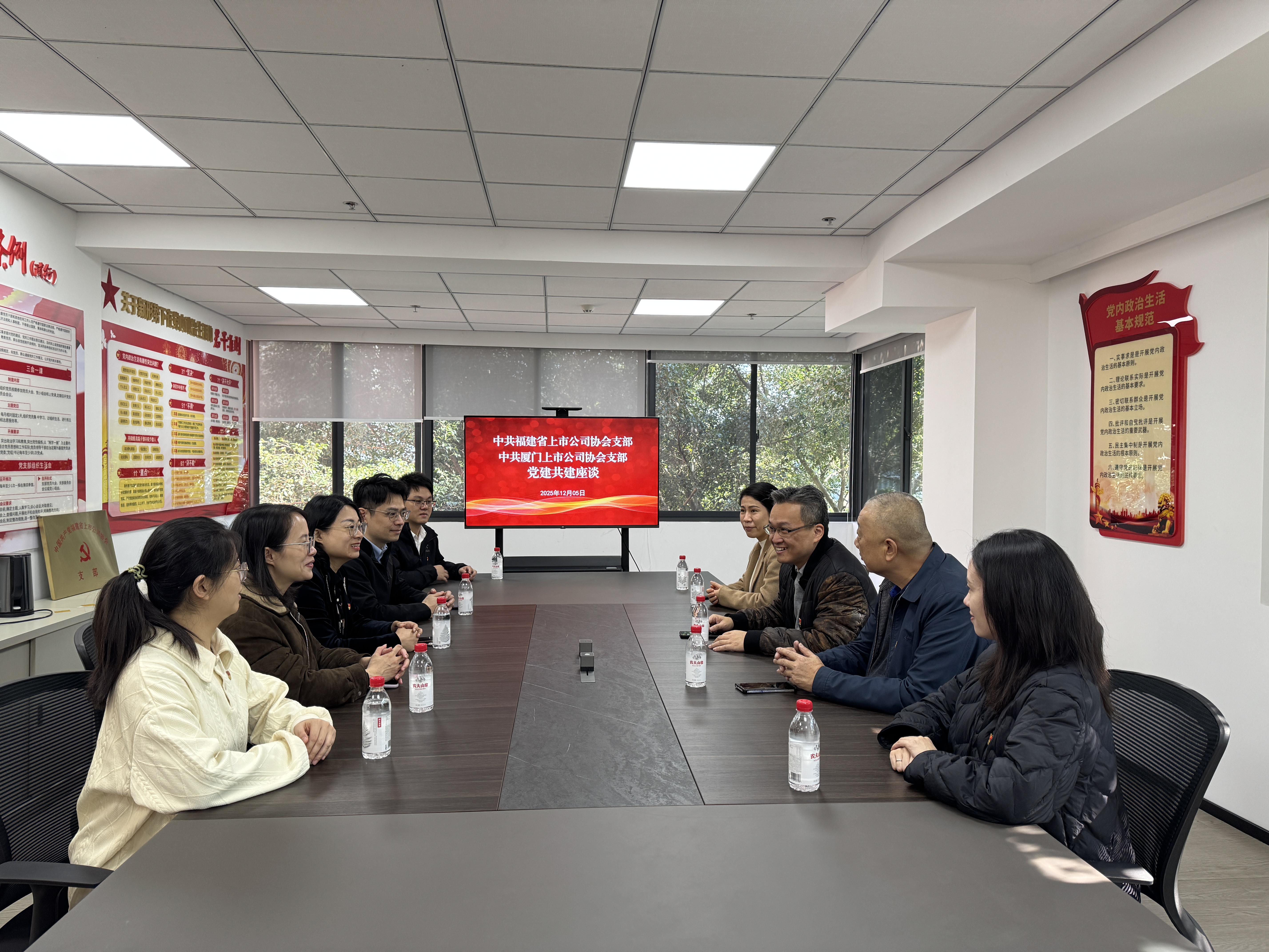之后,雙方開展黨建工作座談,圍繞黨建工作機制建設(shè)、黨員教育管理、黨組織活動開展等方面的經(jīng)驗做法等話題展開交流,并與廈門上市公司協(xié)會達成一致:構(gòu)建互學(xué)互鑒機制,定期舉辦工作交流,共同探尋協(xié)會黨建及業(yè)務(wù)工作的新方法。